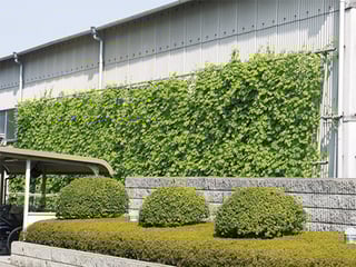多くの機械が稼動する印刷工場でゴーヤなどを育てて、夏場の室内温度上昇抑制を図っています。